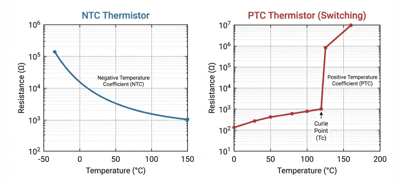 • PTC Thermistors: Primarily for over-current protection and self-regulating switches (not precision measurement).