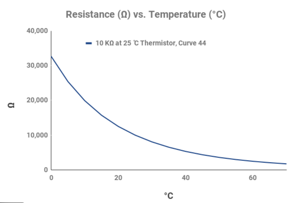 CHART: Resistance vs Temperature (R-T curve) — Plot using Labfacility / Vector Controls 10k NTC table